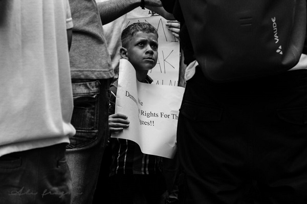 I was walking around when I noticed the elderly woman talking to the media. She was saying, ‘I have pain all over my body. I can’t walk and it’s a very sad moment for me’. She spoke in Farsi (Persian) and someone translated for her into Bahasa Indonesia. The way she was holding her arms and hands, it struck me. So I started taking around seven to eight frames while changing the settings.