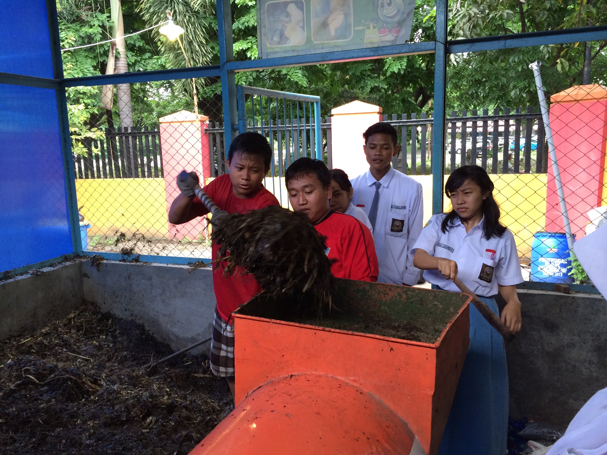 High school students in Surabaya making compost afterschool - Credit: Danau Tanu