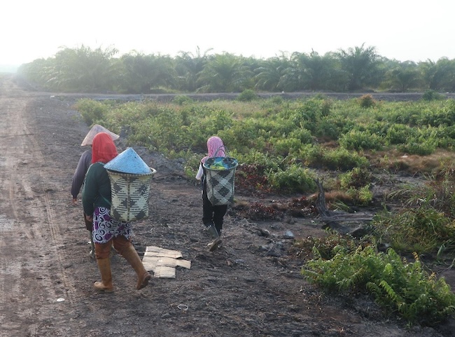 We soon discovered that Bu Eli was one of a kind. Women’s participation in fire management is typically unwanted and this can significantly disadvantage women. Mama Rayhan, from Perigi village, works for a palm oil company as a casual laborer and her husband is a corporate truck driver. When fires were raging around the plantation, she was deeply anxious because it would mean no work for her for a while. This was not the case for her male colleagues. Mama Rayhan’s husband, for instance, was thriving during the fires because male workers can receive up to three times their daily wages for assisting the palm oil corporate firefighters to put out the fires. This opportunity is not afforded to female workers. The fires immediately turn this traditionally shared physical landscape into an exclusively male space.
