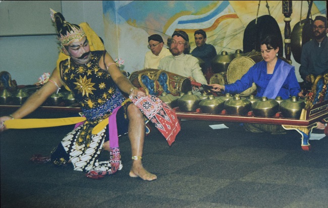 After meeting Emeritus Professor Margaret Kartomi, who was then a lecturer in music at Monash University, in Bali in 1972, and visiting Melbourne at her invitation, he found himself teaching on instruments borrowed from the Embassy in Canberra, and presenting his first dance-drama performance at Monash University. Returning in 1973 to an on-going position at the university and bringing his family, he made Australia his new home. After a couple of years of creating these large-scale dance-drama performances for school students during the day and general public at night, enough money was raised to buy a full gamelan set for the university – the first full set in Australia. Some classes were part of the ethnomusicology program and some were part of lunchtime classes, attended by students from other faculties and interested staff.