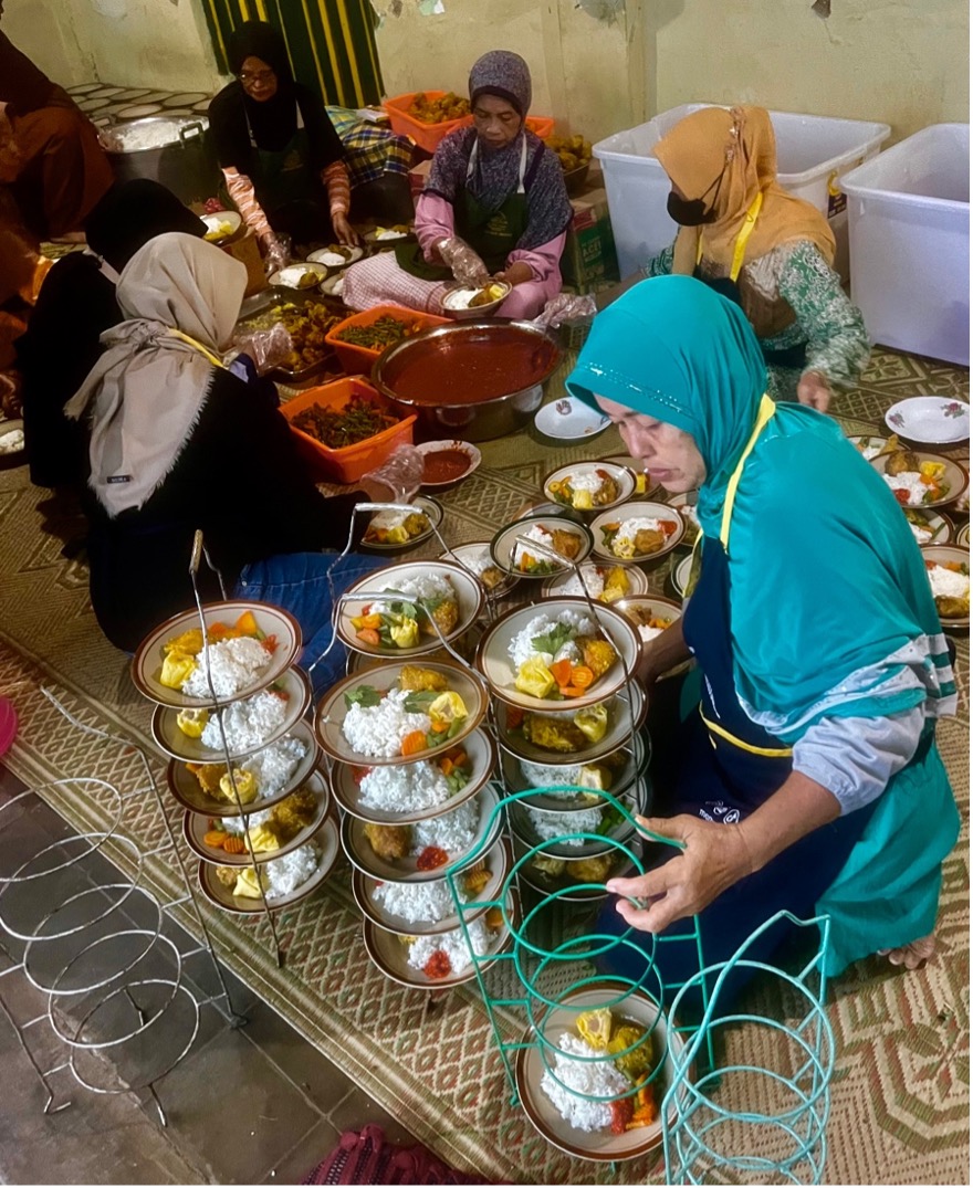 The mosque began offering free buka puasa meals in the year 2000. At that time, it prepared approximately 500 meals per day. The scale of the program has gradually increased to the current level of 3,500 to 3,800 per day, for a total of 105,000 to 114,000 meals across the fasting period. This is a costly, efficient and well managed operation. The total cost is approximately 1.5 billion rupiah or $US90,500.
