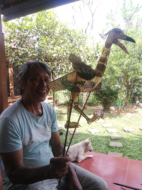 Sujono Keron was very keen to do this, so Gregory arranged for him and Sih Agung Prasetya, a fellow dalang from Magelang, to travel to Bali for a very short course at the Coral Triangle Center (CTC). They learnt about the types of marine animals that live on or from the reefs and the challenges they are facing from over-fishing, bombing, divers and tourism, plastic waste, and the dramatic impacts of climate change on the life of the reef. It was agreed that CTC would commission a set of the new puppets to be used for training and public awareness activities at its new, very impressive marine conservation hub in Sanur.